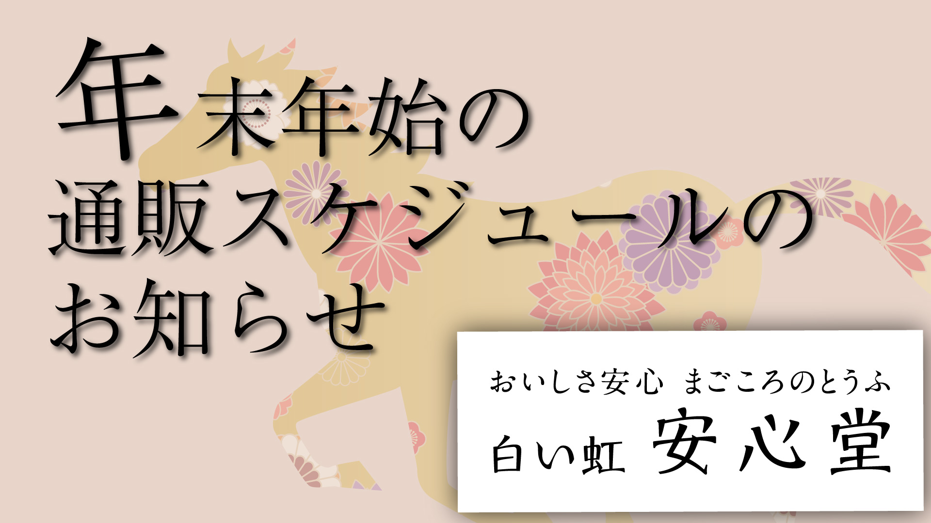 平素より当店をご愛顧いただき、誠にありがとうございます。年末年始の通販スケジュールについて、以下のとおりお知らせいたします。